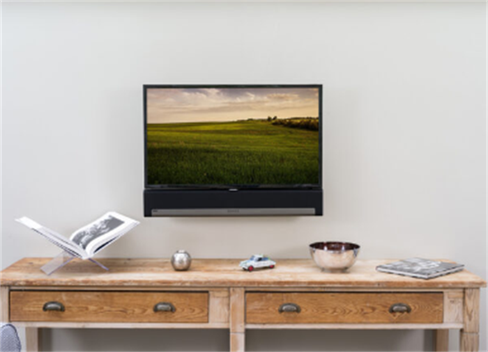Trotz der Tiefe von nur 12 mm kann die Wandhalterung so ausgerichtet werden, dass die Playbar bündig mit der Front des Fernsehers abschliesst,