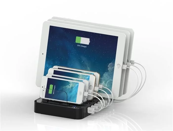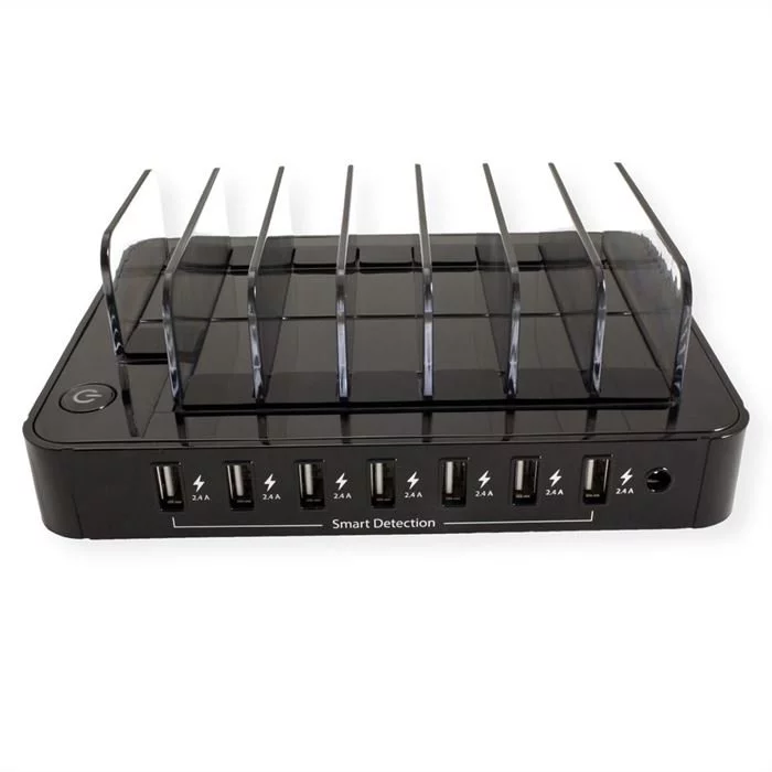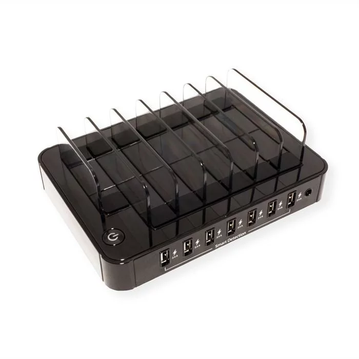 USB-Ladestation zum gleichzeitigen Aufladen von bis zu sieben Geräten über deren USB-Eingang, zum Beispiel: MP3 Player, Smartphones und Tablets, externe HDD-Gehäuse und andere Geräte.