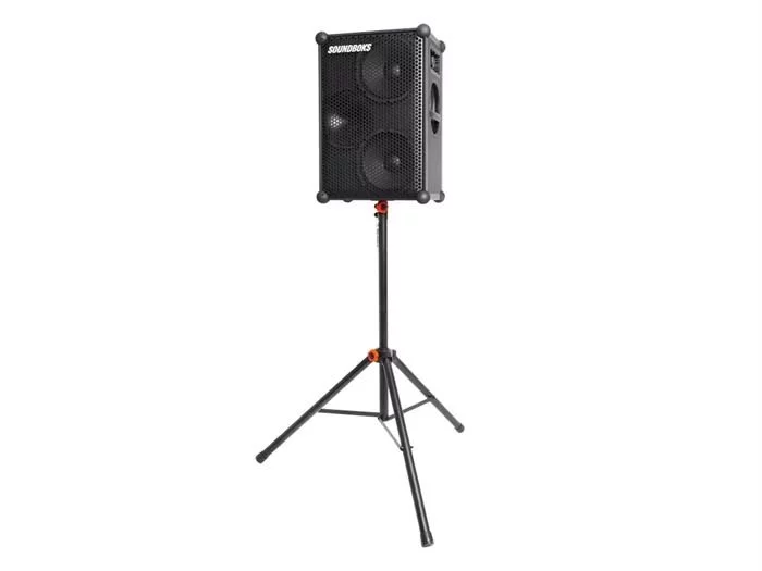 - Hol dir das ultimative SOUNDBOKS Setup mit diesem schwarzen, pulverbeschichteten Stativ-Lautsprecherständer aus Hochleistungsstahl mit Siebdruck Logo