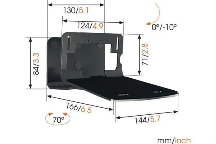 Integrieren Sie Ihren Lautsprecher nahtlos in Ihre Inneneinrichtung, indem Sie ihn mit der Vogel’s SOUND 3205-Wandhalterung an einer beliebigen Stelle an der Wand befestigen. Montieren Sie die Halterung oben oder unten, außerhalb des Blickfelds oder gut sichtbar – die große Dreh- (70°) und Neige- (10° nach unten) Möglichkeit stellt sicher, dass Sie den Lautsprecher immer so ausrichten können, wie er am besten klingt. Diese flache Lautsprecherhalterung bietet eine sichere Befestigung für Ihren Lautsprecher und ist in Schwarz und Weiß passend zur Farbe Ihrer Lautsprecher erhältlich.